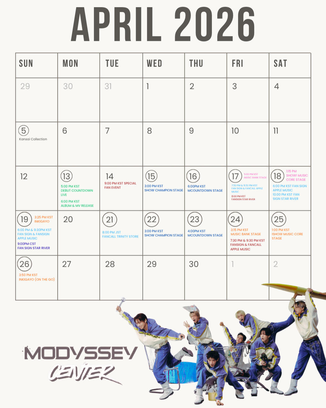 From comeback stages to special celebrations. Keep track of every milestone as MODYSSEY continues to move forward. This is your guide to all upcoming events and important dates for the month.